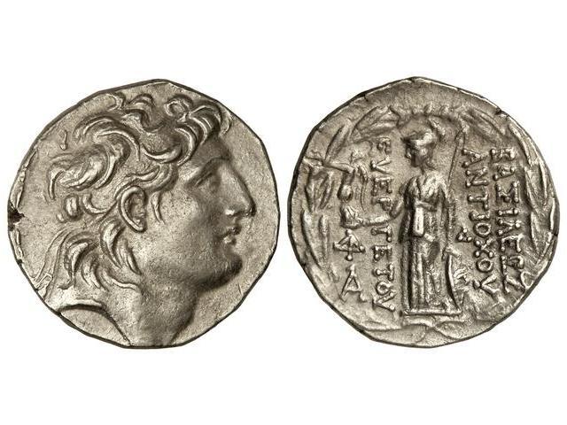 Tetradracma. - 138-128 a.C. - ANTÍOCO VII. - REINO SELÉUCIDA. - Anv.: Cabeza diademada a derecha. Rev.: Atenea en pie a izquierda delante y detrás leyenda. 16,70 grs. AR. Se-7091. EBC. - -