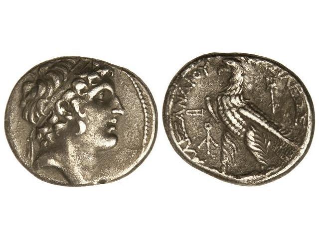 Tetradracma. 150-149 a.C. ALEJANDRO I. TIRO. REINO SELÉUCIDA. Anv.: Cabeza diademada de Alejandro a derecha. Rev.: Águila en pie a izquierda, alrededor leyenda. 13,90 grs. AR. Se-7033 var. EBC-/MBC+.