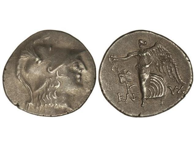 Tetradracma. - 155-136 a.C. - SIDE. PAMPHYLIA. - Anv.: Busto de Atenea con casco a derecha. Rev.: Nike avanzando a izquierda. K¶E-VX. 16 grs. AR. Pátina. Se-5436. MBC+/EBC-. - -
