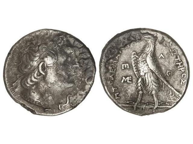 Tetradracma. 246-221 a.C. PTOLOMEO III. REINO PTOLEMAICO DE EGIPTO. Anv.: Cabeza diademada a derecha. Rev.: Águila en pie a izquierda, alrededor leyenda y monogramas. 13,72 grs. (Oxidaciones). Se-7811 sim. MBC.