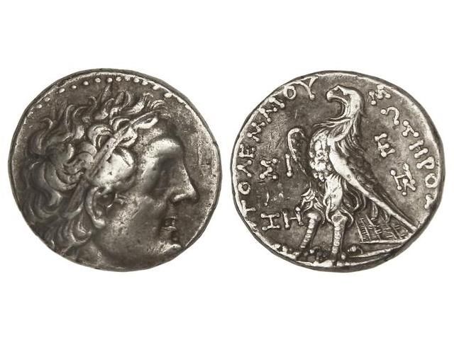 Tetradracma. 246-221 a.C. PTOLOMEO III. REINO PTOLEMAICO DE EGIPTO. Anv.: Cabeza diademada a derecha. Rev.: Águila en pie a izquierda, alrededor leyenda y monogramas. 14,05 grs. Se-7812 var. MBC+.