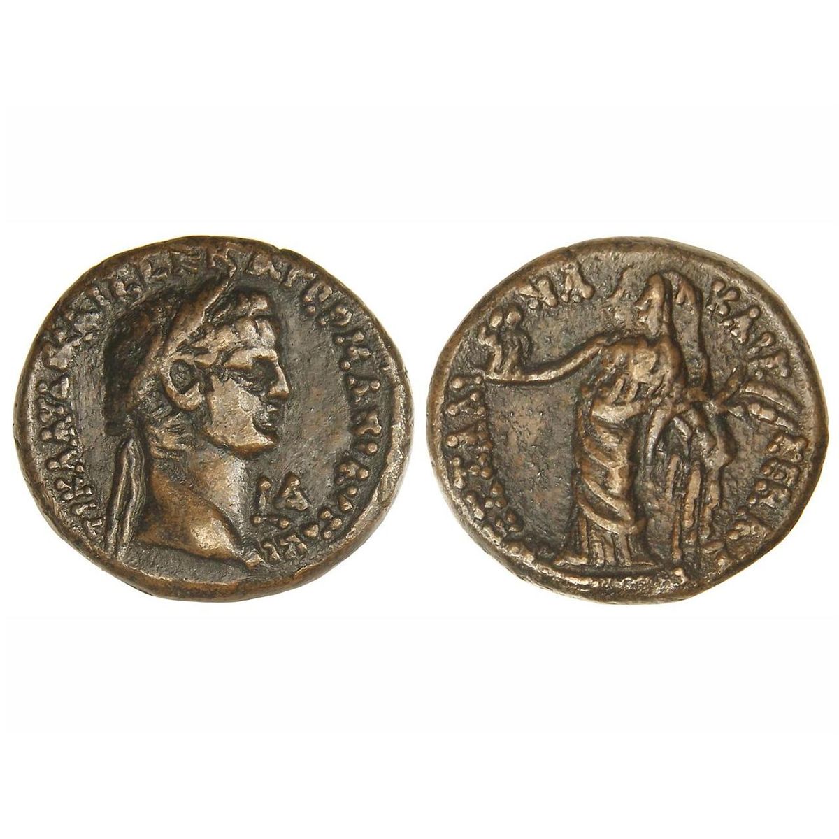 Tetradracma. - 41-54 d.C. - CLAUDIO y MESALINA. - ALEJANDRÍA (EGIPTO). - Anv.: Busto laureado a derecha, alrededor leyenda. Rev.: Mesalina en pie a izquierda con dos niños en la mano derecha, alrededor leyenda. 11,50 grs. AE. Pátina marrón. GIC-495 var. MBC+. - -