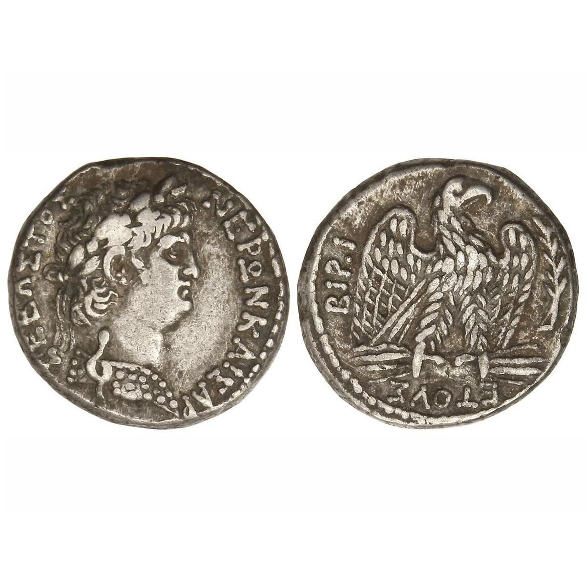 Tetradracma. - 54-68 d.C. - NERÓN. - ANTIOQUÍA (SIRIA). - Anv.: Busto de Nerón laureado a derecha, alrededor leyenda. Rev.: Águila en pie a derecha sobre rayo, alrededor leyenda. 14,90 grs. AR. GIC-618. MBC+. - -