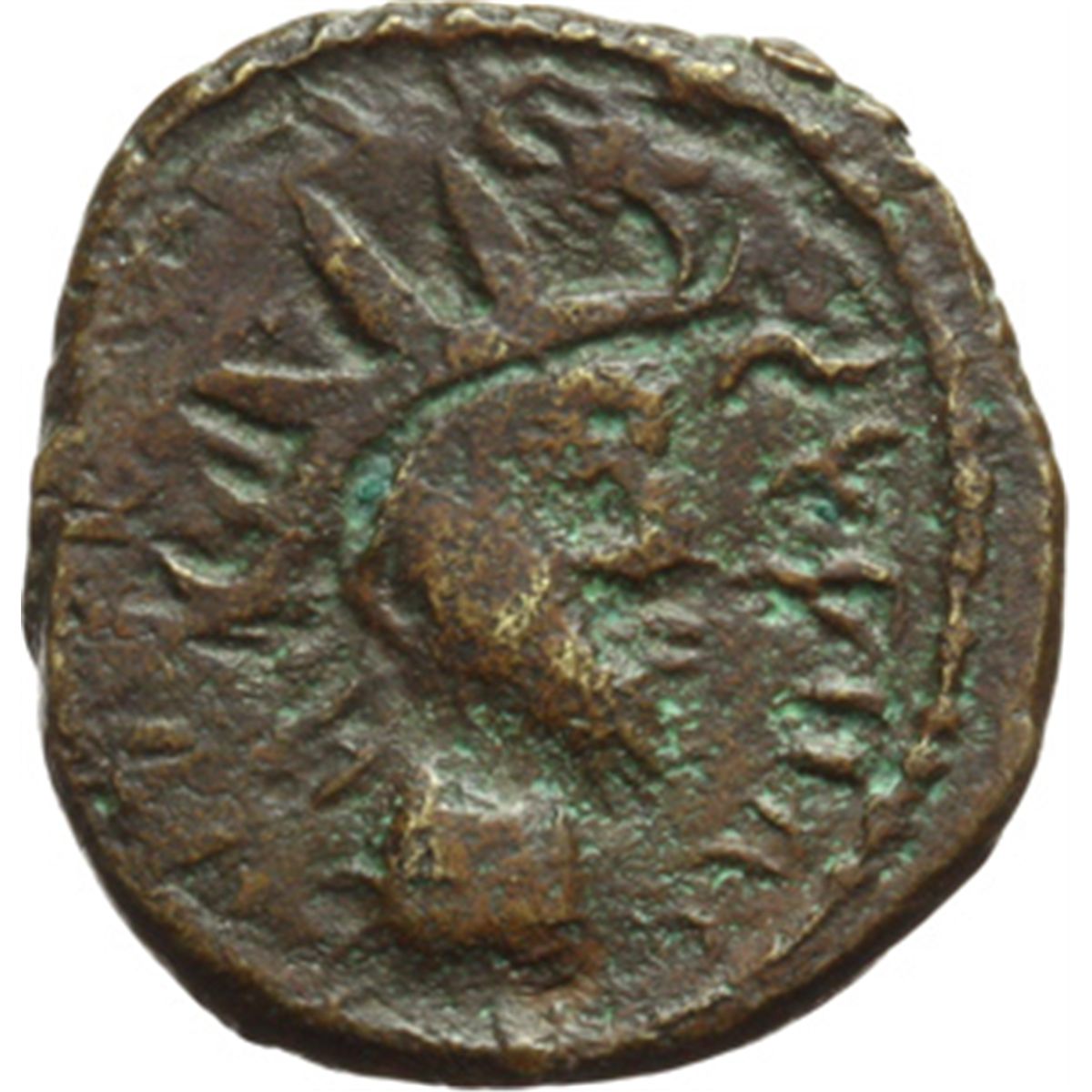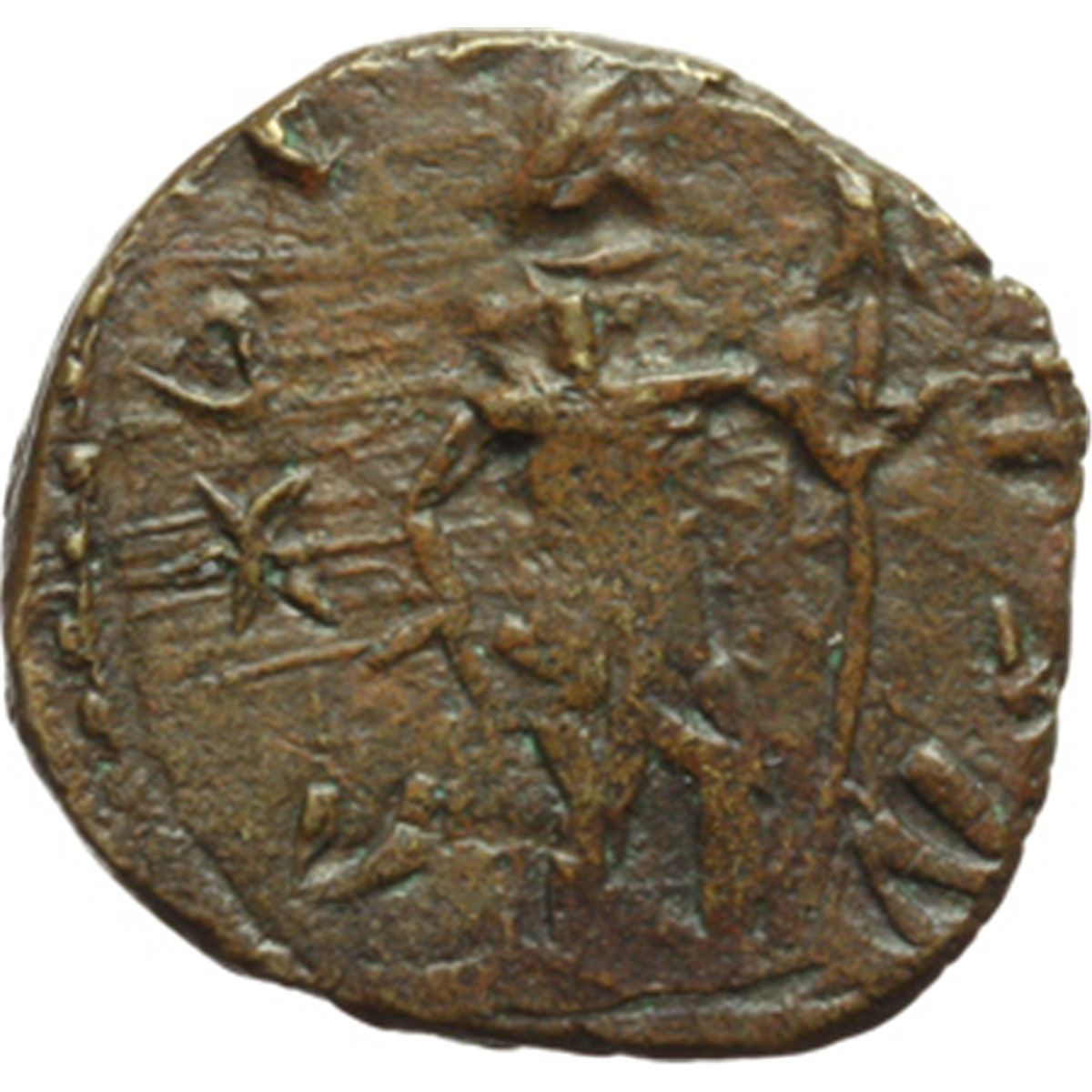 Monete Barbariche. Tetrico I (270-273). Gallia. Imitazione di antoniniano. D/ Pseudolegenda. Busto radiato a destra. R/ Pseudo legenda. L'imperatore stante di fronte con lancia. AE. g. 2.62 mm. 16.00 R. BB.