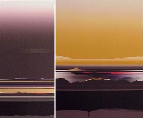 VIEWS; NIGHT VIEWS, 1987, two color screenprints, each signed in pencil, from the numbered edition 100, image 27 ½ x 16 ½”, full margins. (2) $300/500
