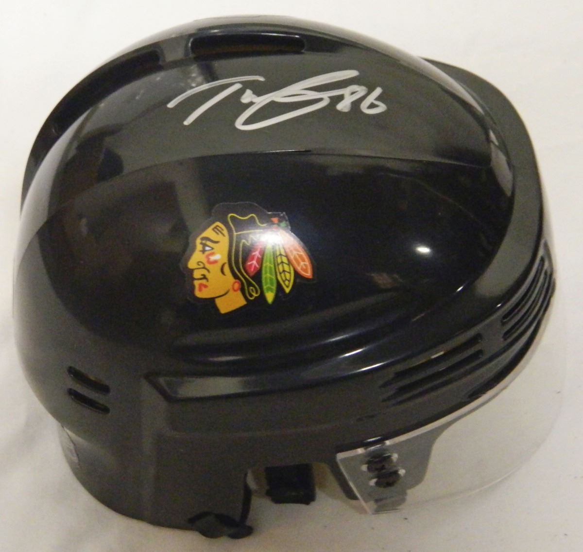 Teuvo Teravainen signed Chicago Blackhawks black hockey mini helmet. Item comes with a Schwartz Sports Memorabilia tamper-proof numbered hologram and Certificate of Authenticity which can be verified online.
