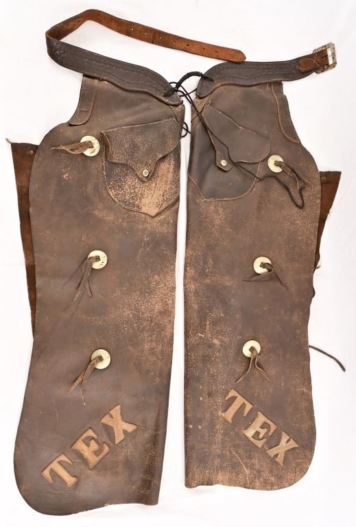 24" x 36". Snap closed leather pockets. "Tex" sewn on bottom of each leg.