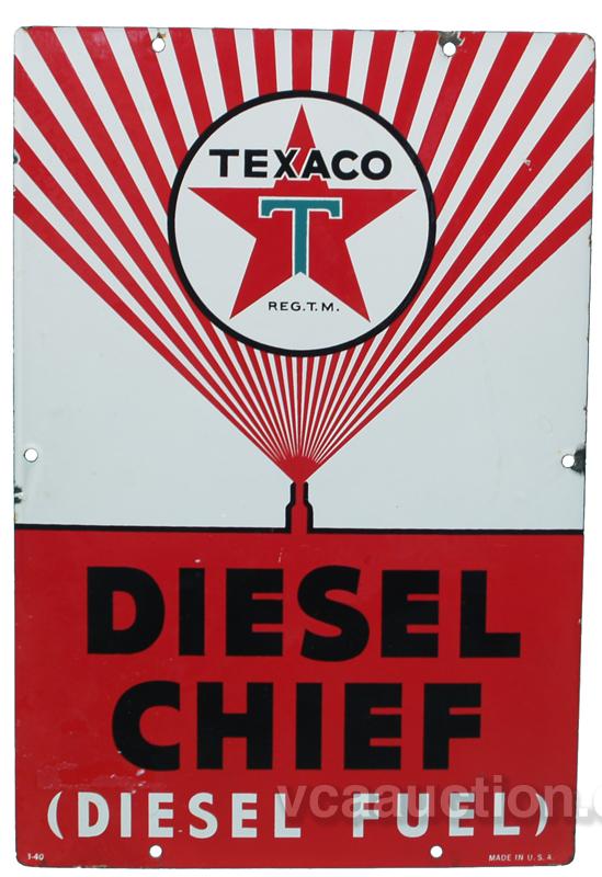 Texaco Diesel Chief Porcelain Sign Wide Spray, Rare - 1