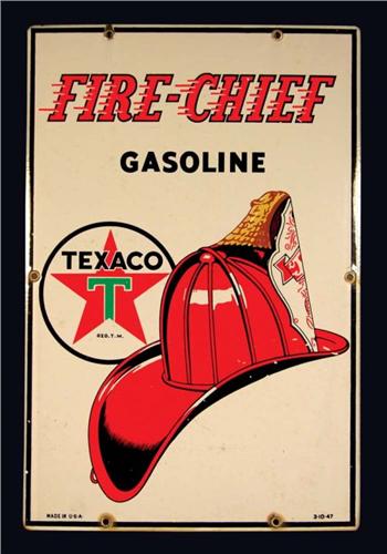Texaco Fire Chief Porcelain Sign. Excellent condition. 12 X 18 inches.