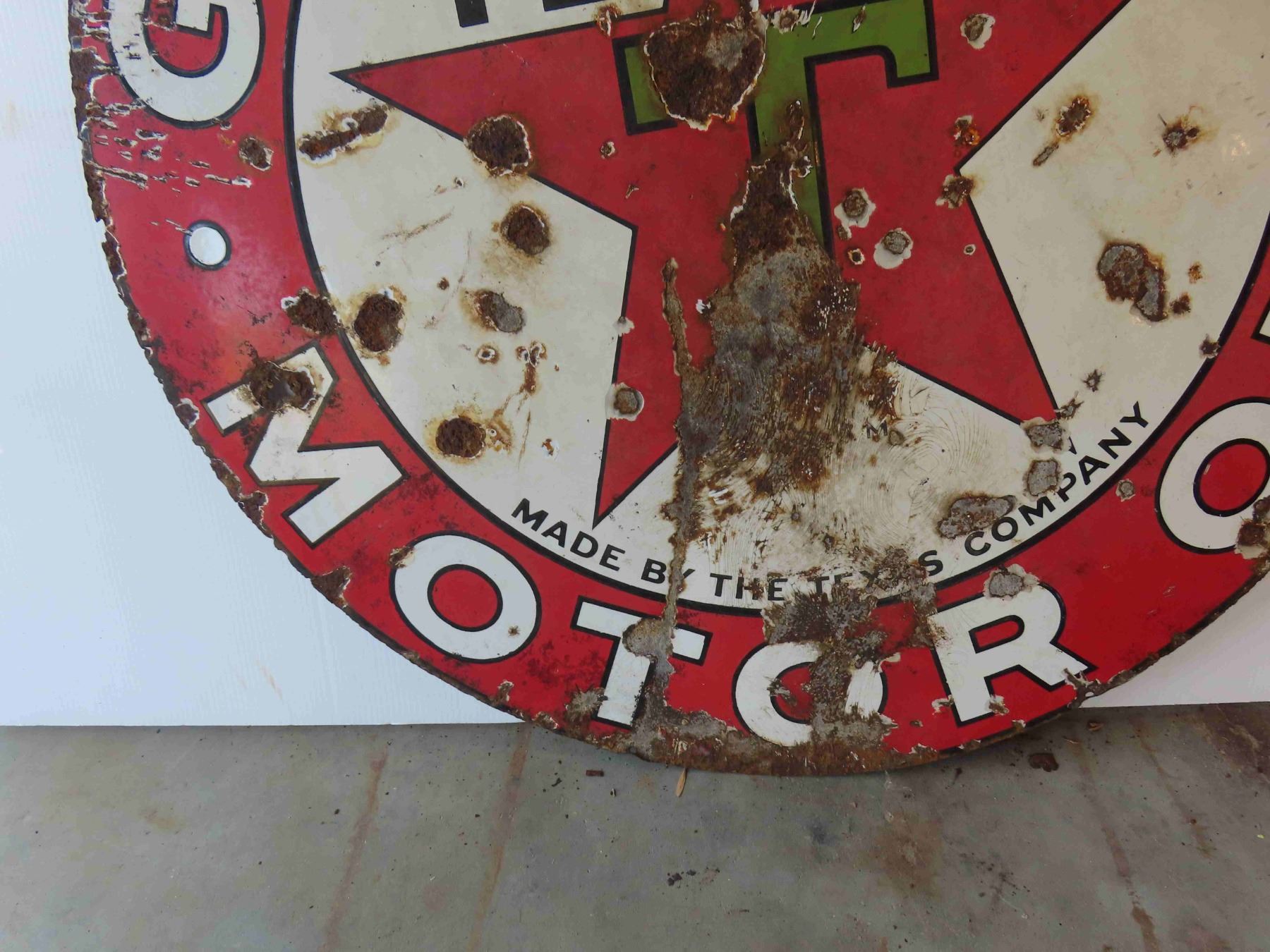 Texaco Motor Oil / Gasoline Porcelain 2 Sided Round Sign from 1930s 42'' Across