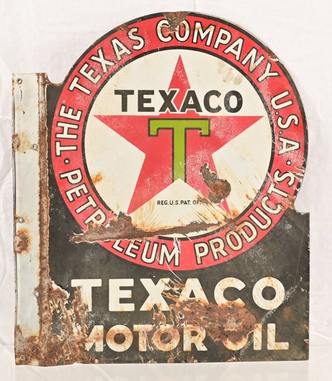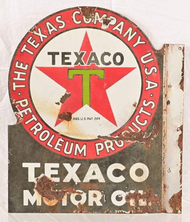 Flange porcelain Texaco motor oil. 18" x 23". Circa 1920's