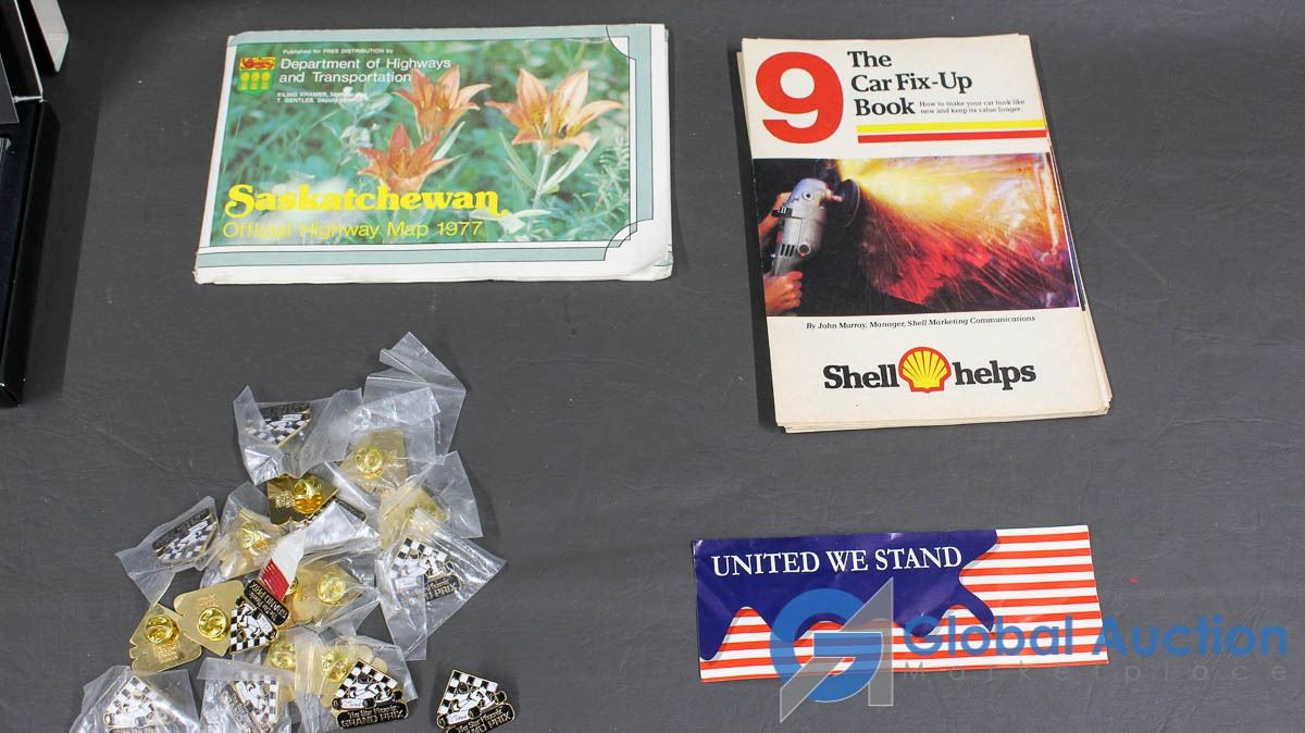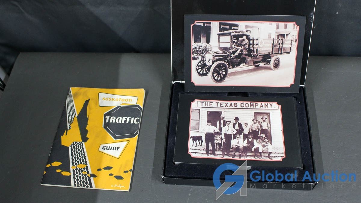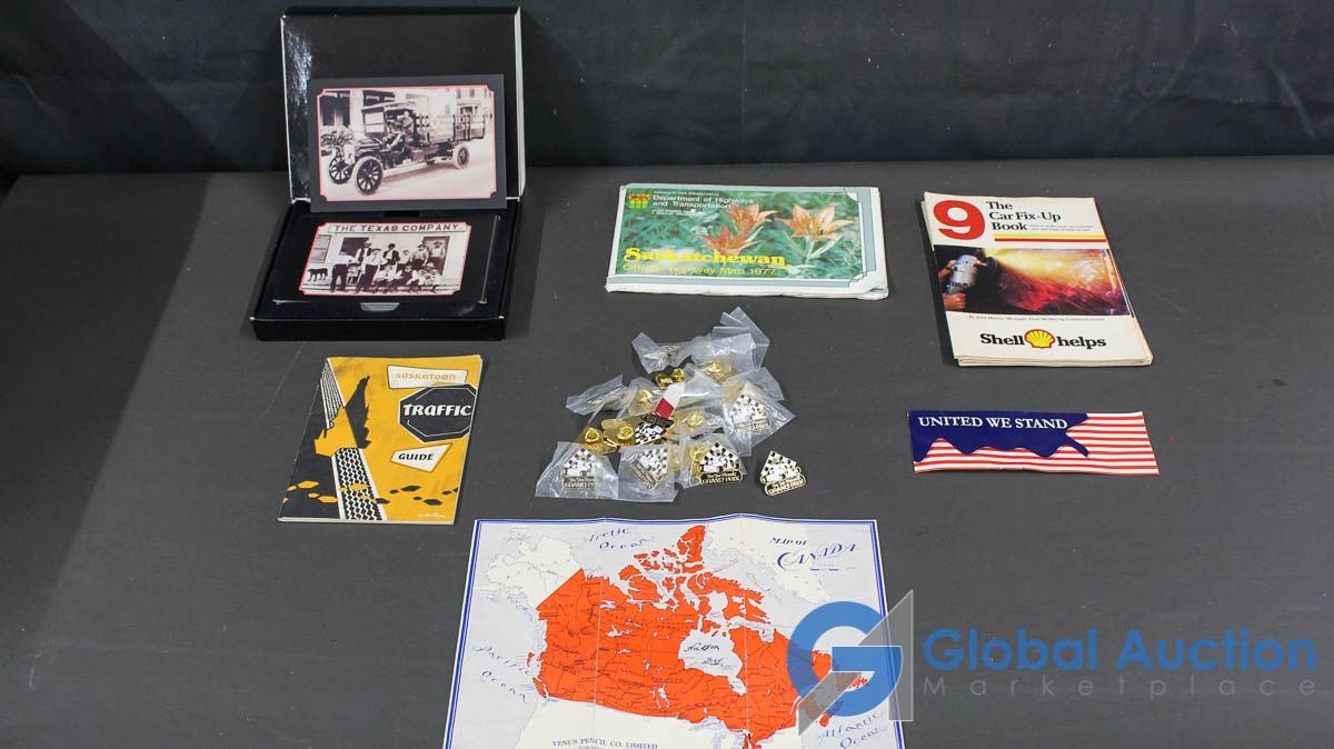 Texaco Postcards, Souvenir Pins, 1977 Sask Highway Map, Etc.