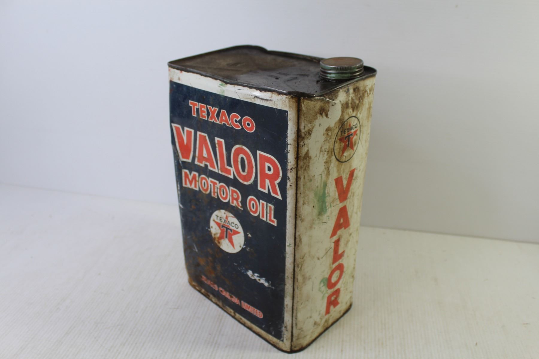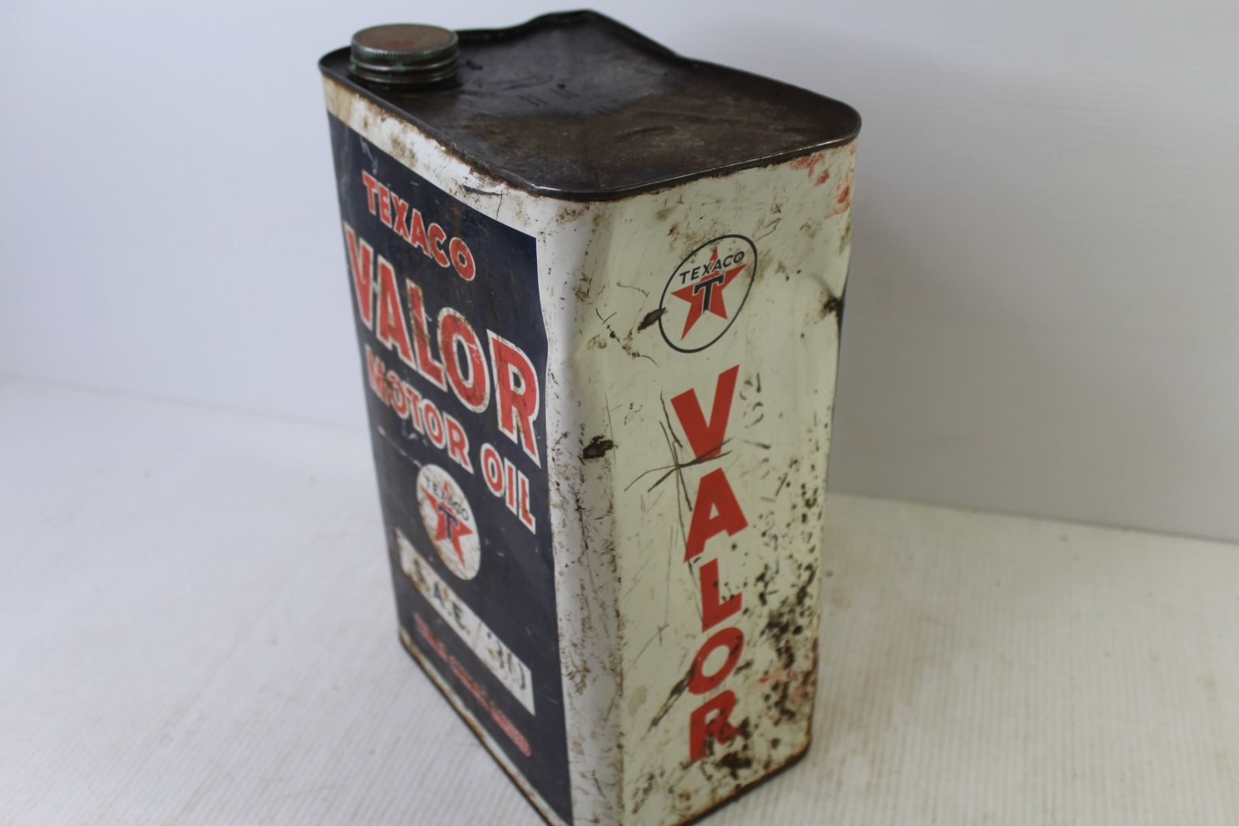 Texaco Valor Motor Oil Can (dents - has small amount of oil inside)