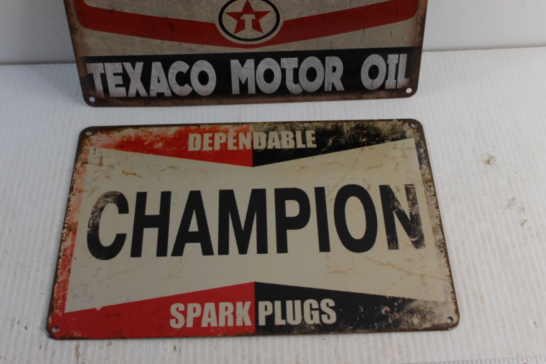 Texaco and Champion Signs 12'' x 8''