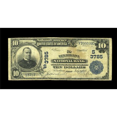 <B>Texarkana, TX</B></I> - $10 1902 Plain Back Fr. 626 <B>The Texarkana NB</B></I> Ch. # (S)3785<BR> The paper is solid on this original note, which displays stamped signatures. <B>Fine.</B></I><BR><BR><b>Shipping:</b> Coins & Currency (<a target="_blank" href="http://www.heritageauctions.com/common/shipping.php">view shipping information</a>)