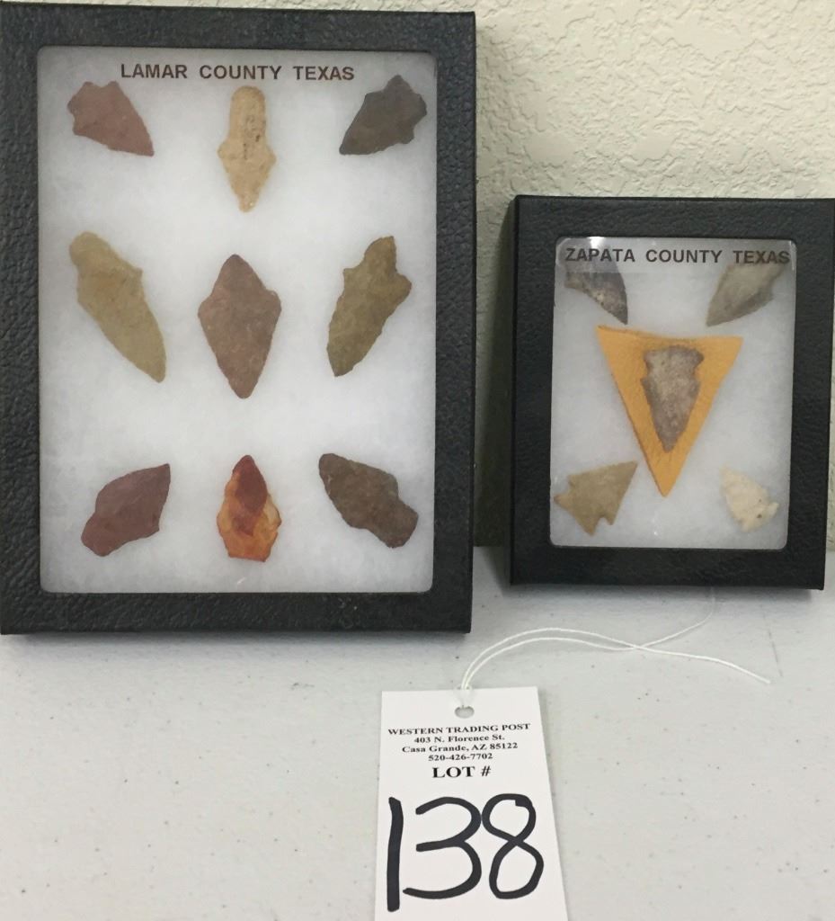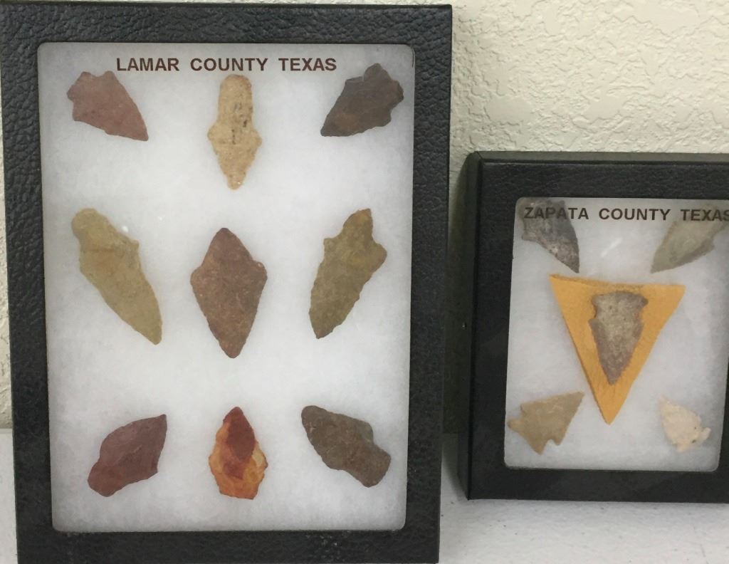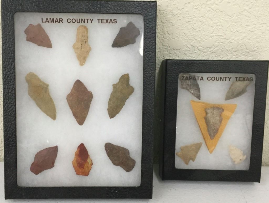 There are two different shadowboxes with authentic prehistoric Texas arrowheads included in this lot! Please look closely at the pics as they are an important part of our description. Shipping: There will be a $7 handling / packaging fee for shipping this lot. The actual cost of postage will be added on top of that.