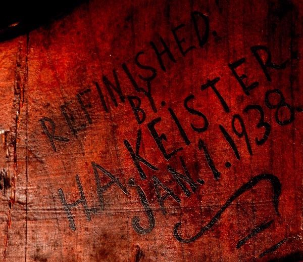 The pedestal is composed of two pieces of walnut. Visually, the pedestal is separated into four sections: rise-vase-ring; bulb; ring-cylinder-ring; and bulbous finial (on bottom). The widest turning is a 5” diameter. The pedestal was most likely turned by a treadle lathe.