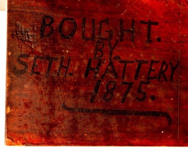 The tilting assembly consists of two 1” x 22” tapered cleats, which are attached by two hidden pegs to the 1-1/2” x 10-1/2” x 11” walnut pivot block. The top pivots at a 90 Degree angle against the rounded-over block. A wooden keeper (attached by one screw) secures the top to the pivot black. A 1-1/2” x 1-5/8” x 1-3/4” mortise (in the pivot back) accepts the tenoned pedestal.