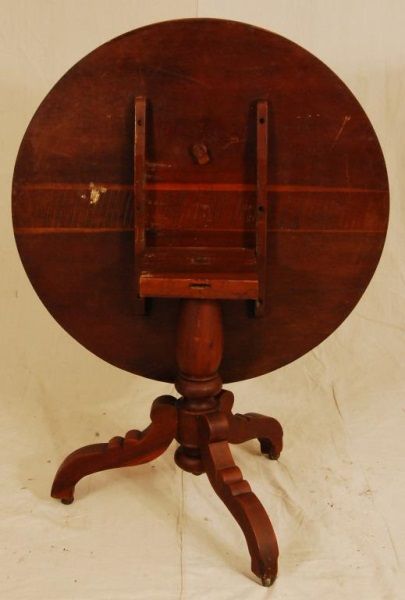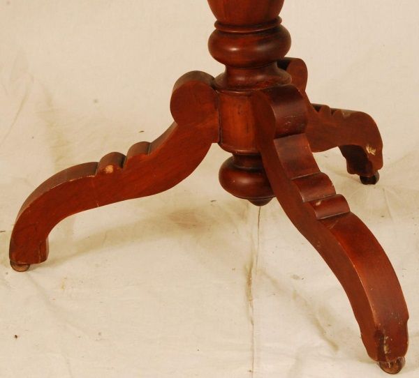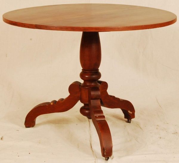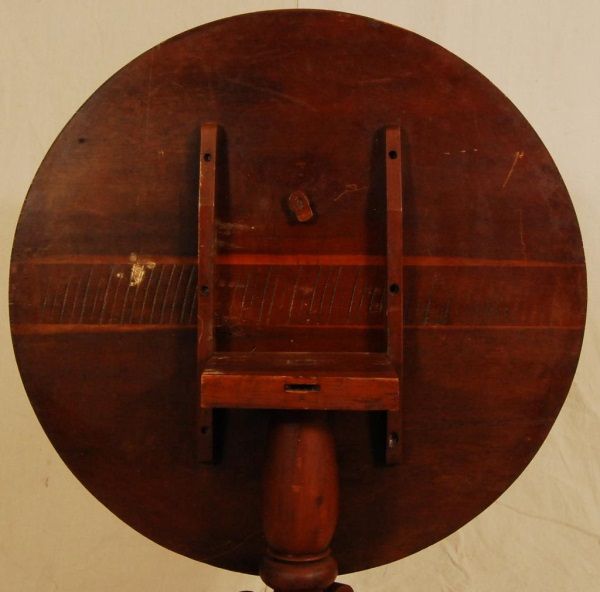 The table has been restored and the center most board appears to be replaced. Most documented tilt-top tables were constructed in Fayette, Gillespie and Comal Counties. Attributed to Texas craftsman Johann M. Jahn, New Braunfels Texas. In as much as Johann M. Jahn was the only documented cabinetmaker to use cherry, this center table could be a product of another cabinetmaker residing in the aforementioned counties.