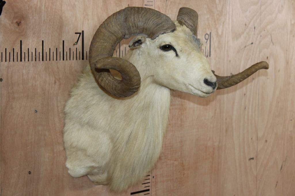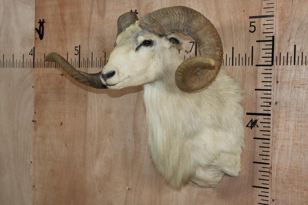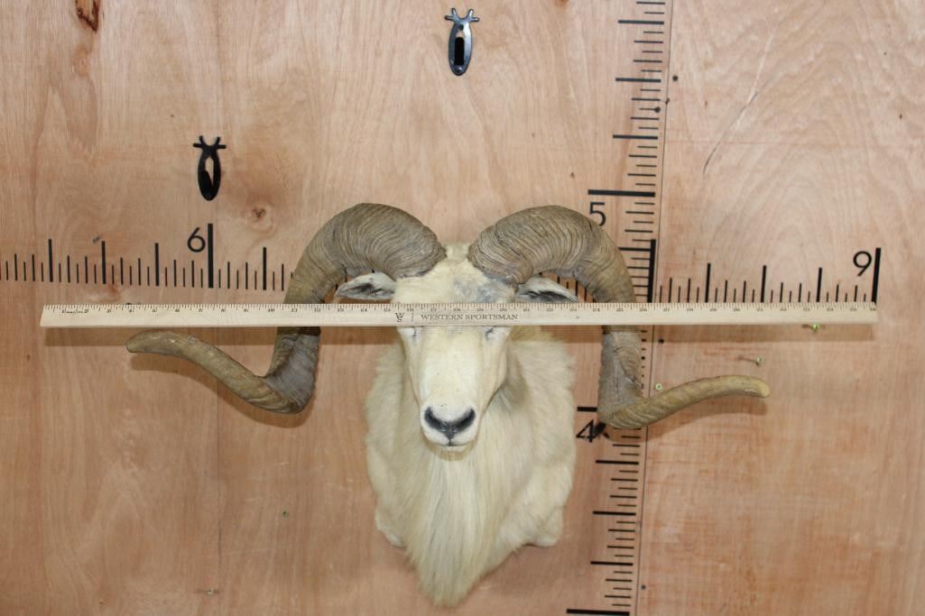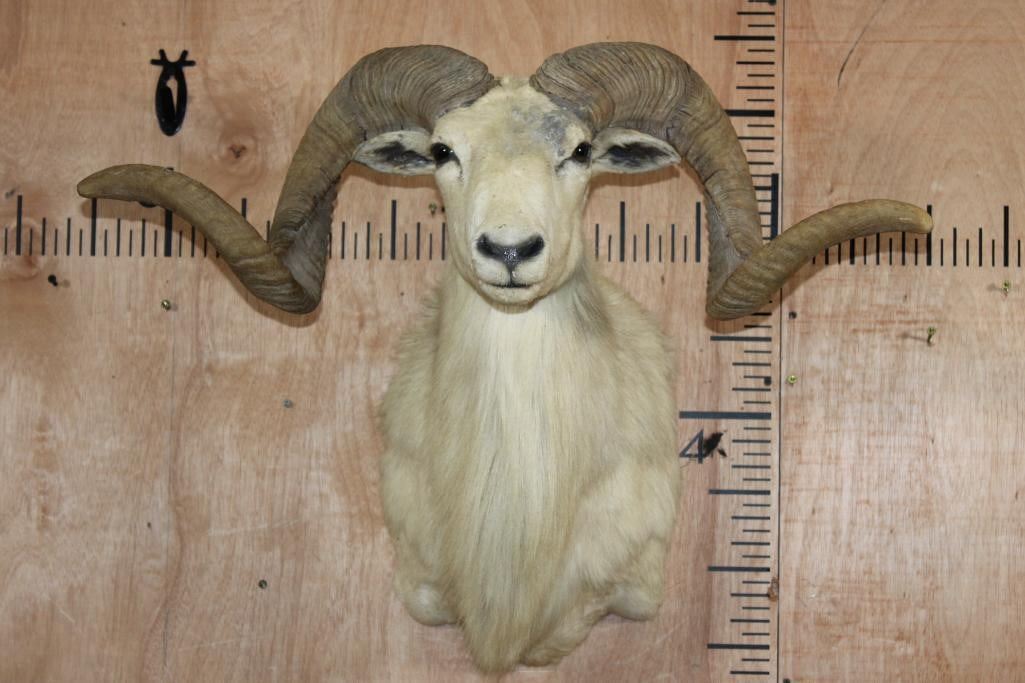Texas DALL SHEEP Shoulder Mount with a 28" Spread. The Left Horn measures 31.25" Long and the Right Horn measures 31.5" Long. TAXIDERMY