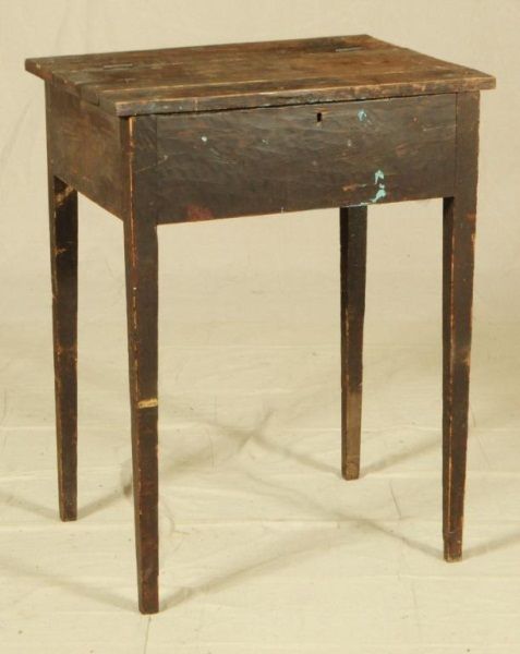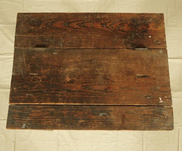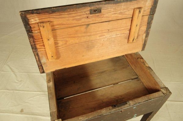 Hinged top flips up with storage underneath, locks from front, with key. 20 1/2" deep x 26" wide x 34" tall.