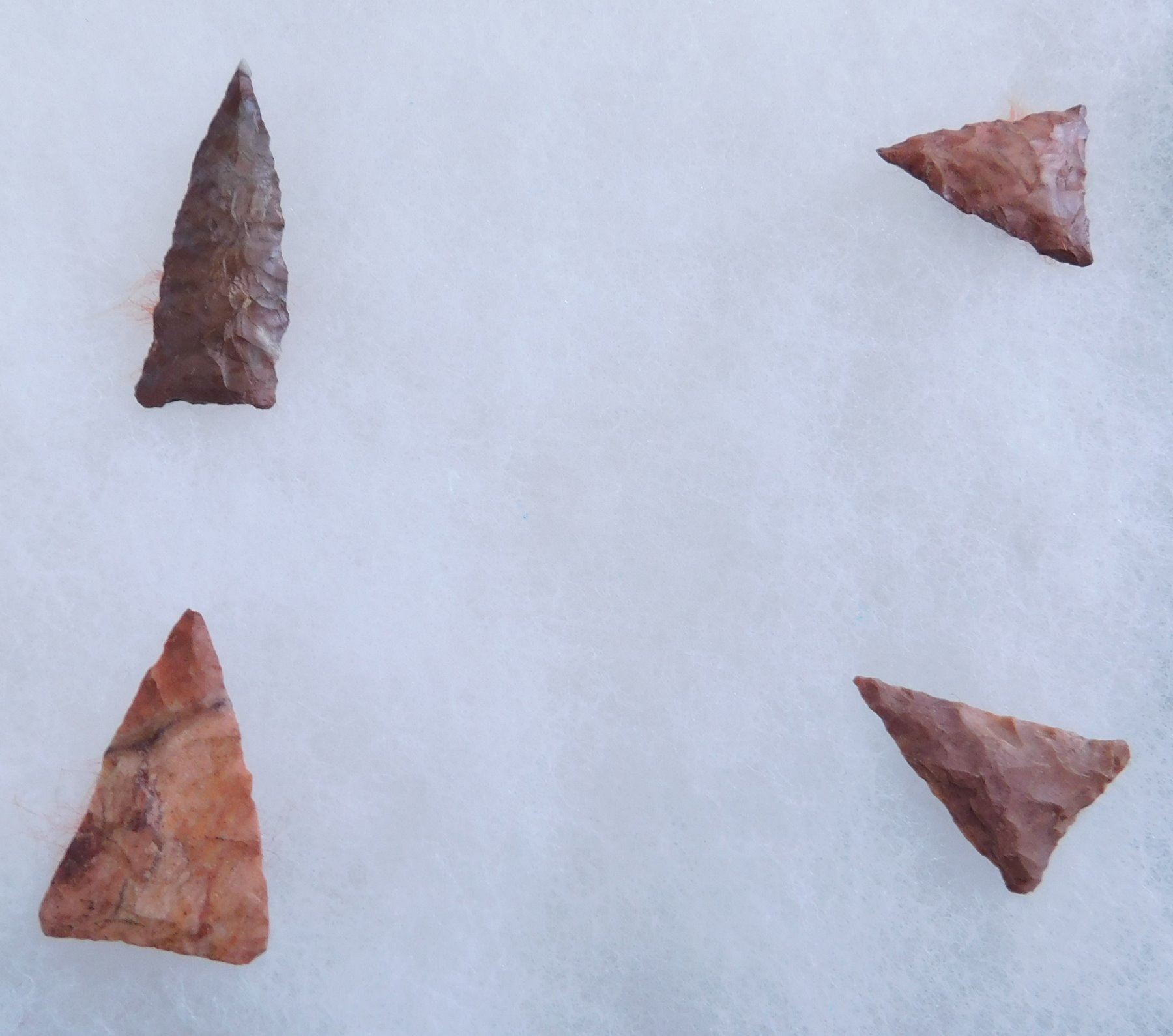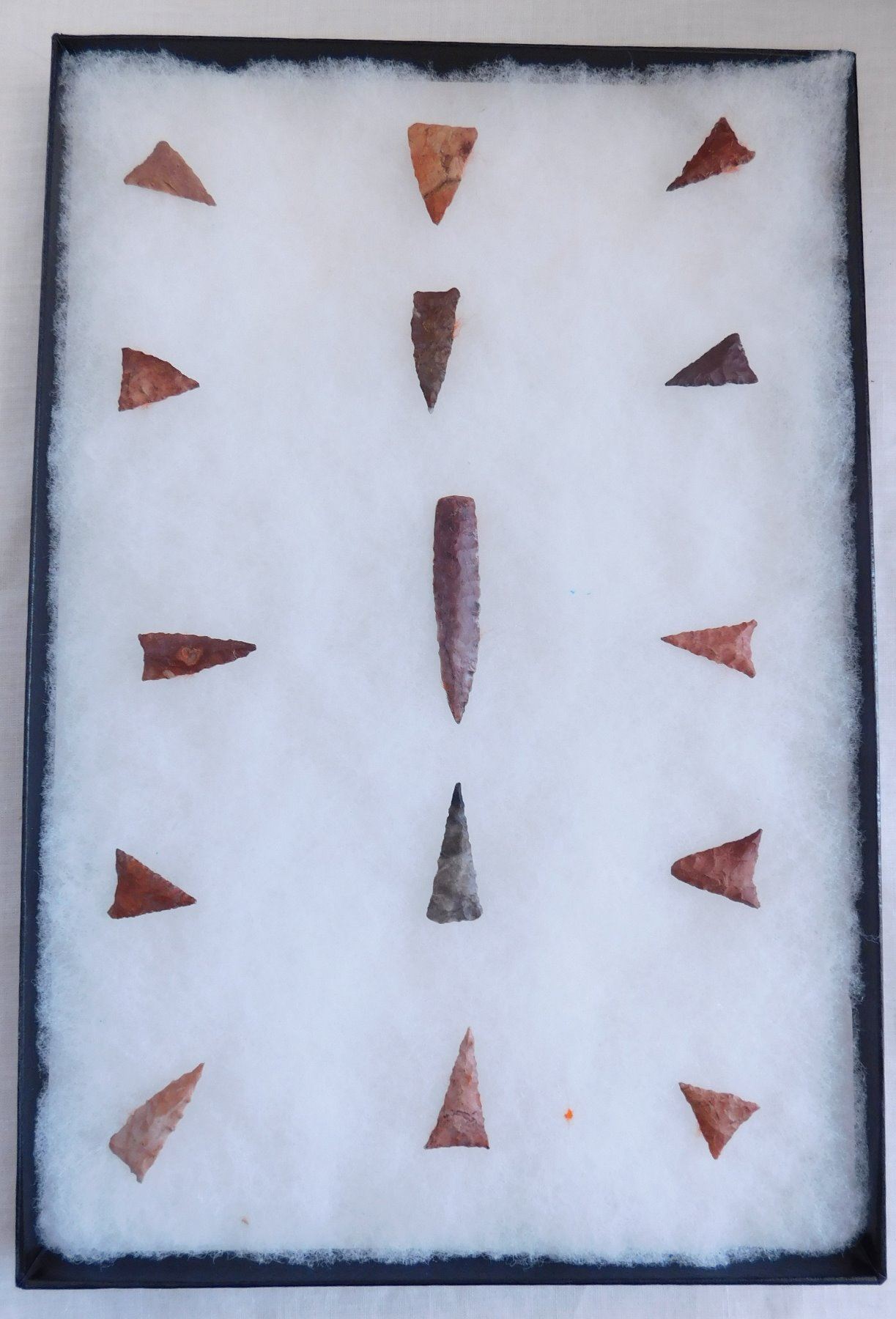 Texas Flint Collection, pre-historic items. Made of chert, the items measure from 3/4" to 2 3/4". Bell County, Texas. Frame not included. Condition: As found, see images. Shipping: $16.50 w/insurance and signature.