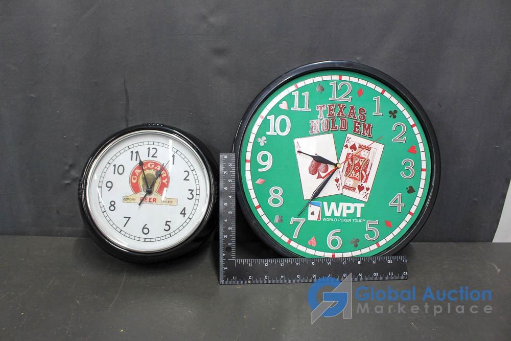 Texas Hold'em Poker and Calgary Beer Wall Clock (Both Working)