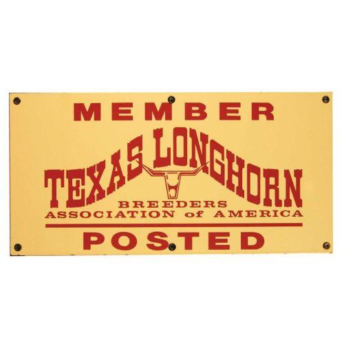 Texas Longhorn Breeders Assoc. of America Member. Porcelain Sign. Mint condition. 20 X 10 inches.
