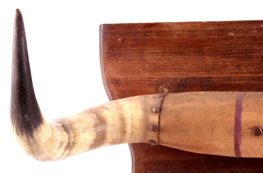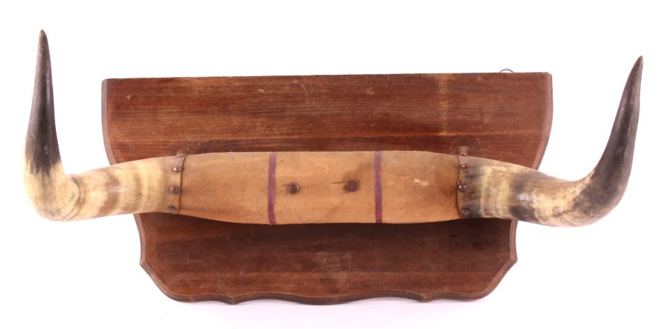 This is a Texas longhorn mount. These horns are mounted to a solid wood backing. The mount is in very good condition. The horns measure 27" wide.