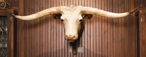 Texas Longhorn Shoulder Mount. Very old, but in decent condition. Horns are 64” wide. On display at Relics of the Old West Trading Post in Santa Fe since the 1960s. (est $1,000-1,500)