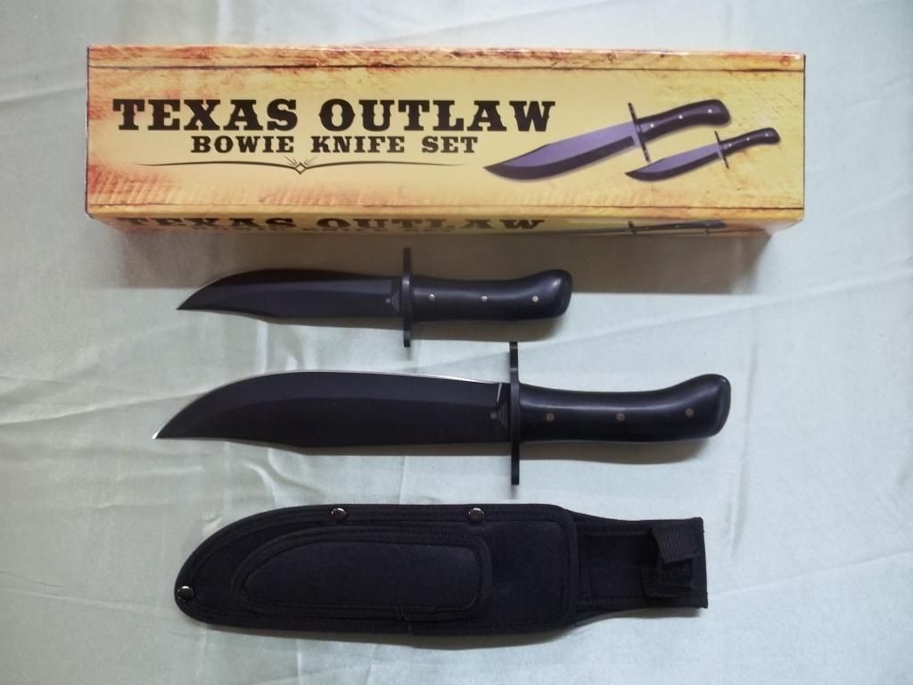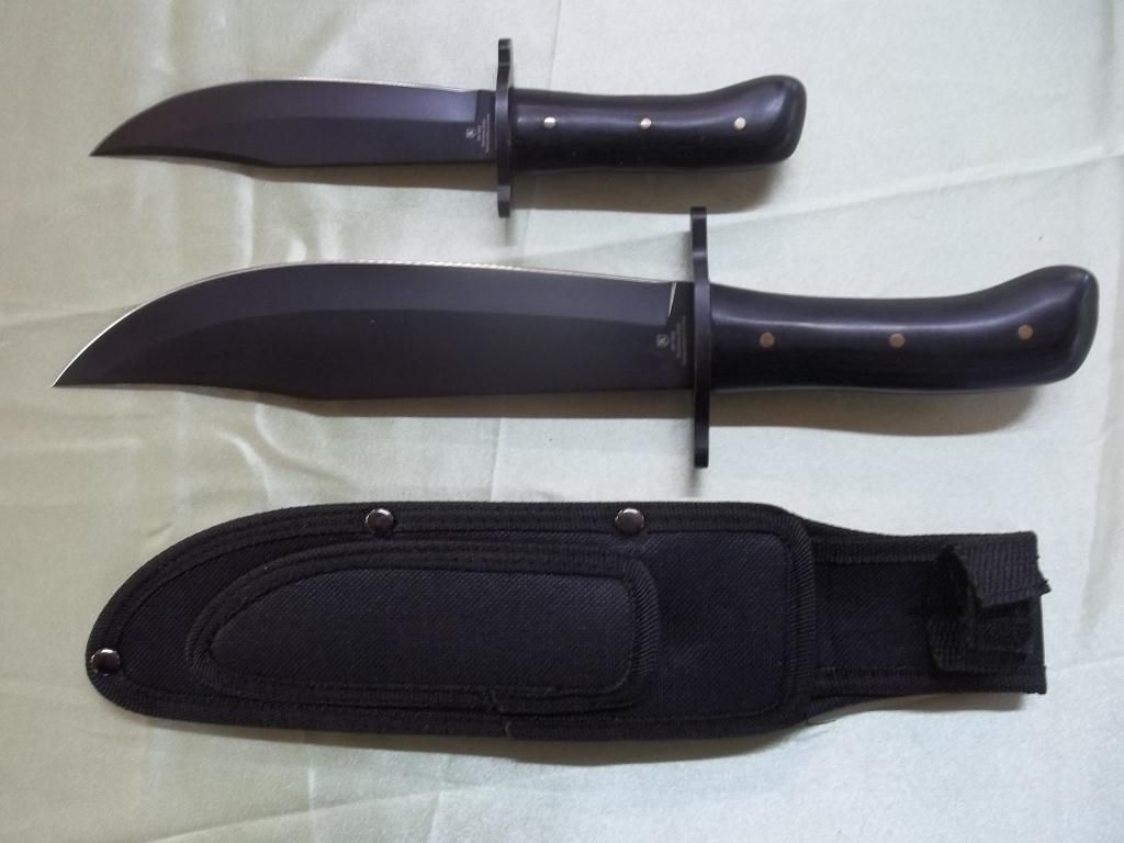 Black Coated Stainless Steel Blades, Black hardwood Handles & Twin Nylon Sheath.