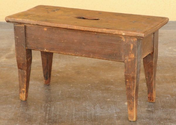 Pine stool measures 9" deep x 19 1/2" wide x 12" tall.
