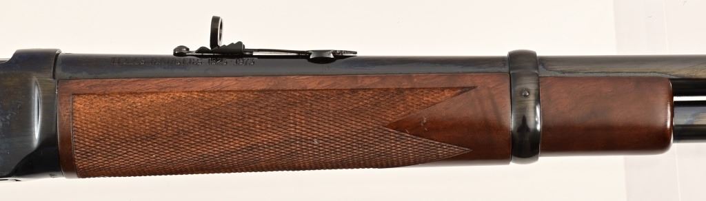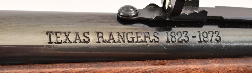 Limited 150th Anniversary Commemorative Edition to honor the Texas Rangers #41/150. Blue finish, 16" barrel with right side inscription "Texas Rangers 1823-1973", figured checkered furniture. Serial RA41, manufactured 1974