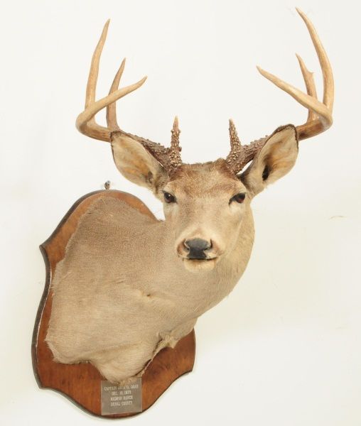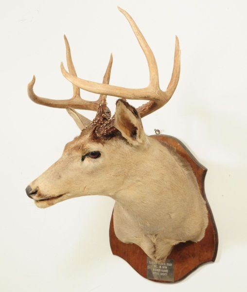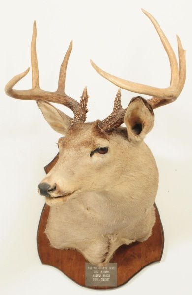 White Tail Deer mount with plaque, "Captain Jack O. Dean Dec 18, 1978 Madron Ranch Duval County". 18 1/2" spread.