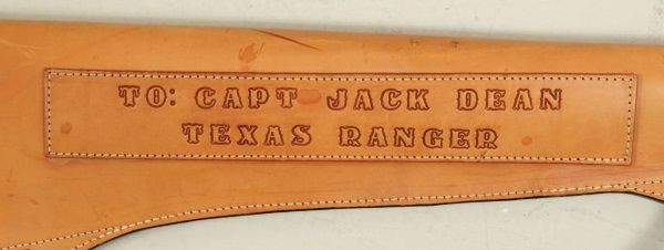"To: Captain Jack Dean Texas Ranger On His 50th Birthday From Men Of Co. D." Kirkpatrick Leather Co. Laredo, TX. 31 1/2" long.