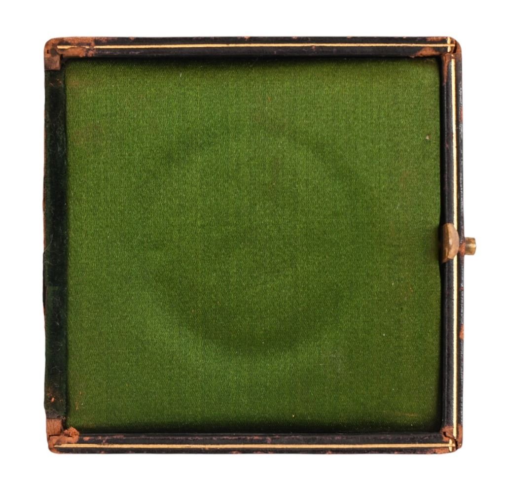 From the John Coffee Hays, Applewhite-Clark Collection. Aztec Club 1847-1897 medal, made by Tiffany & Co. and engraved on the edge "Col. John C. Hays, Texas". Aztec coin pendant measures 1.5" in diameter. Medal would have been sent to Hays’ family. With original Tiffany & Co. case