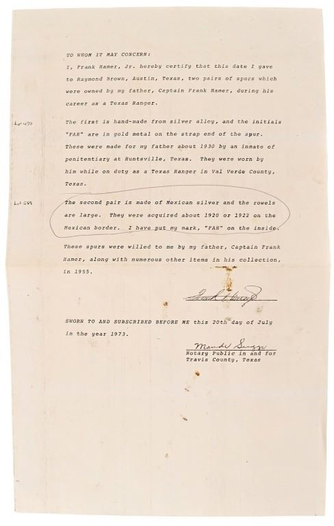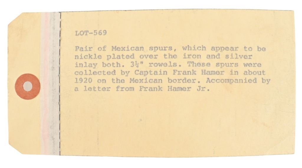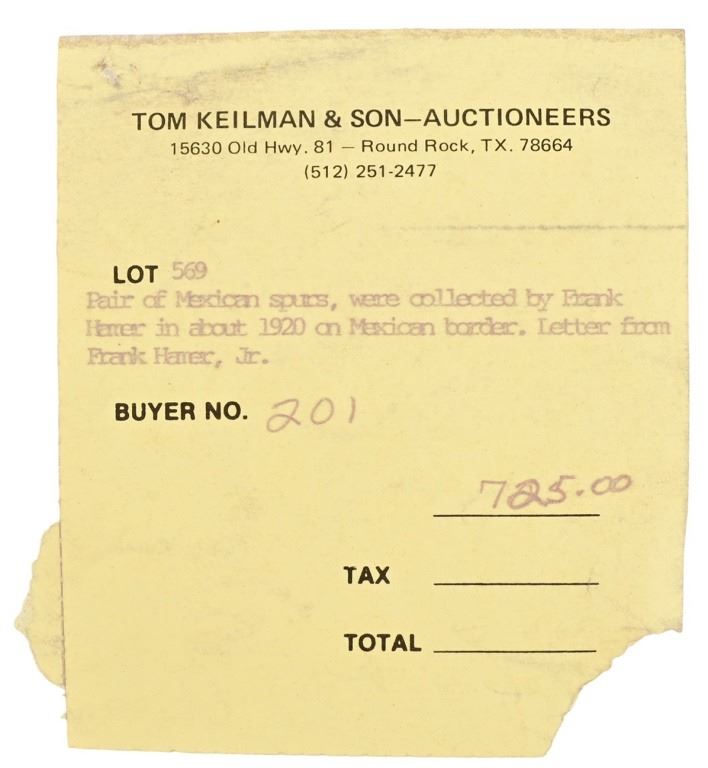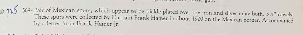Mexican spurs acquired at a Tom Keilman auction in the mid 1980s. With provenance letter from Frank Hamer's son.
