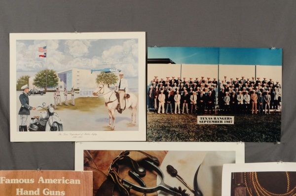 Donald Yena, U. S. Marshal Poster (22'' x 17''); 1887 Texas Rangers Company D Poster; 12 Charles Russell (16'' x 10-1/2')'; Texas Rangers September 1987 Photo; Texas Department of Public Safety, 1935-1985 (20'' x 16')'; Famous American Handguns by Donald Yena 6 Prints (20-1/2'' x 16''); Signed Randy White "Dallas Cowboy" Advertisement By Tom Greenwood (22'' x 17''); Western Print GP Courtney Signed, 173/1000 (18'' x 24”); Longhorn Poster Signed Joe Taylor (24'' x 20'')