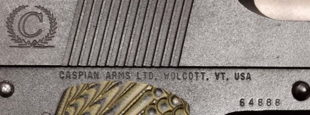 * Caspian Arms. Wilson .45 barrel, Wilson Combat magazine, Trijicon sights.