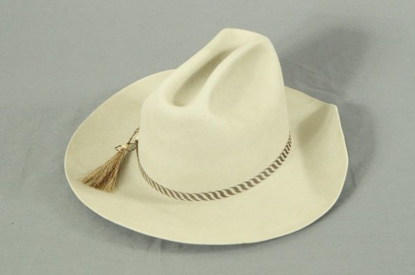With a King Ranch Horse Hair Hatband. American Hat Company. Color: Silver Belly. Horse hair hat band. Hat is marked "Capt. Jack Dean". Size 7 1/4 in. with 4 in. brim