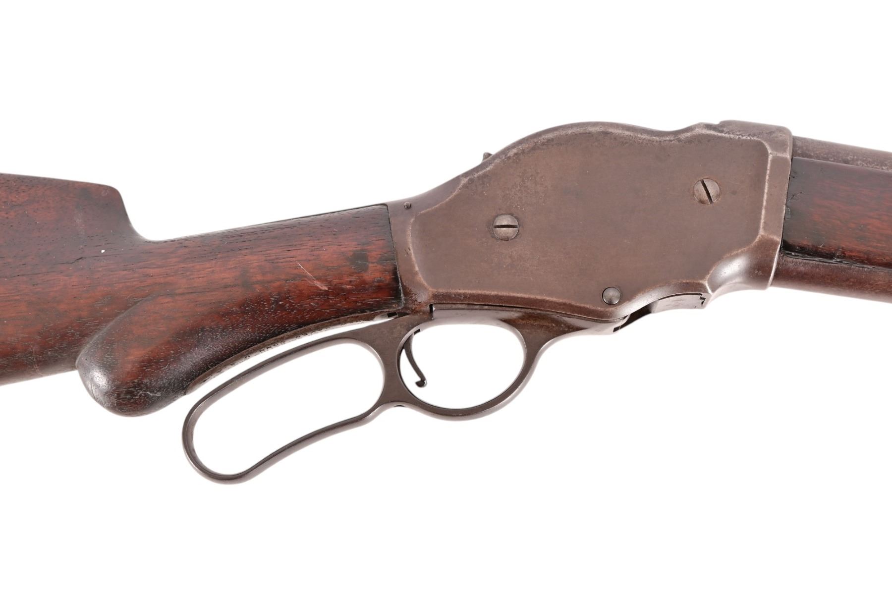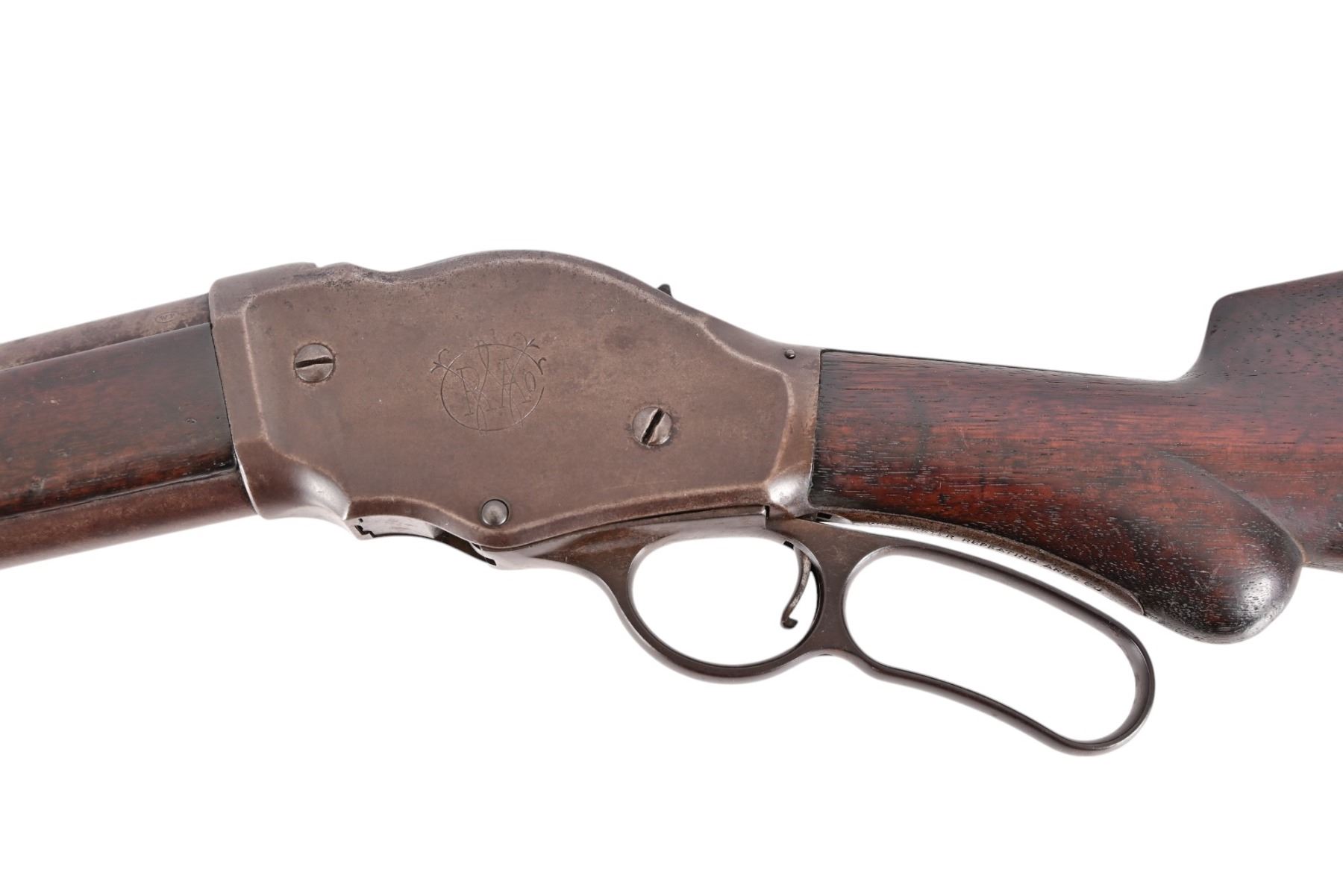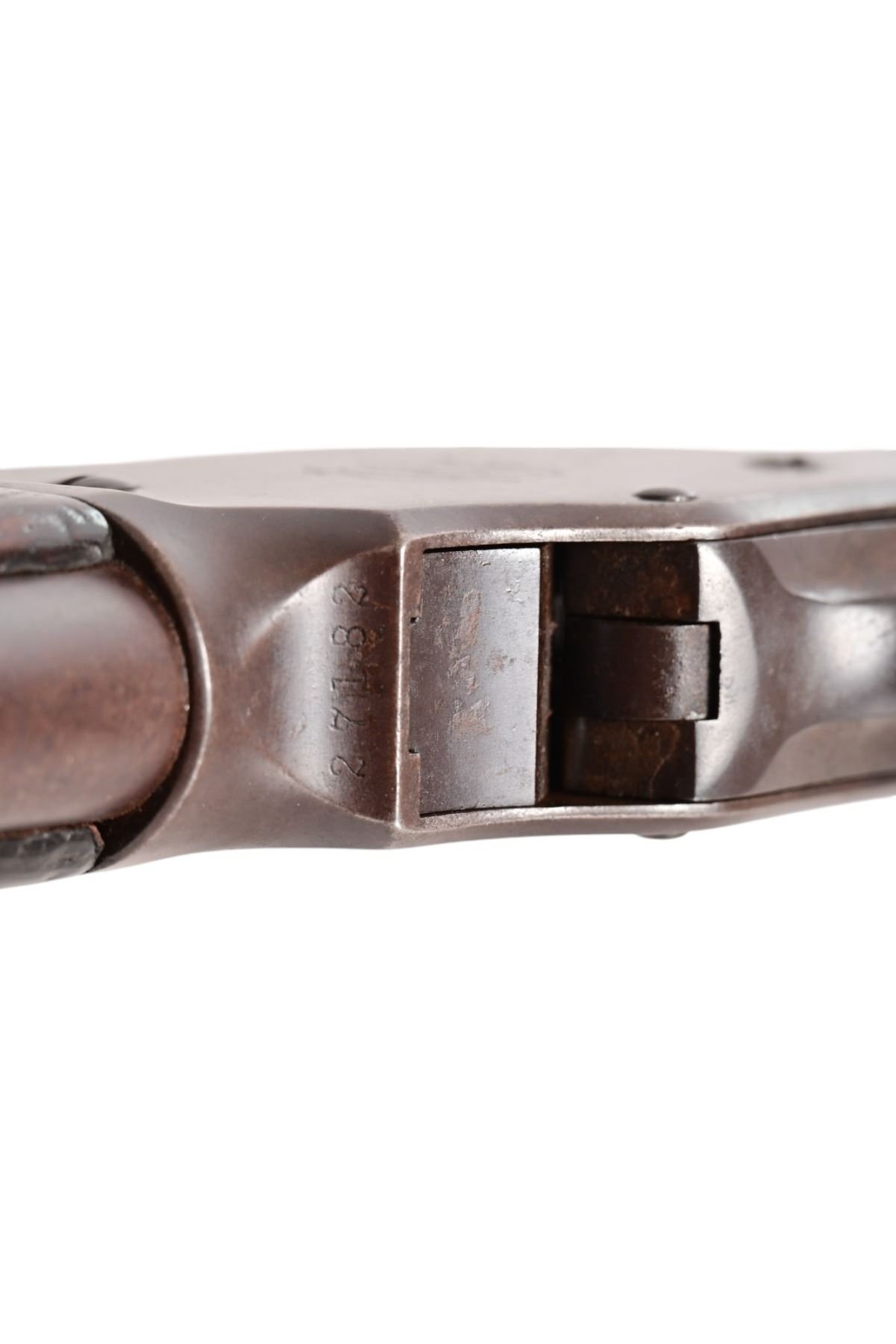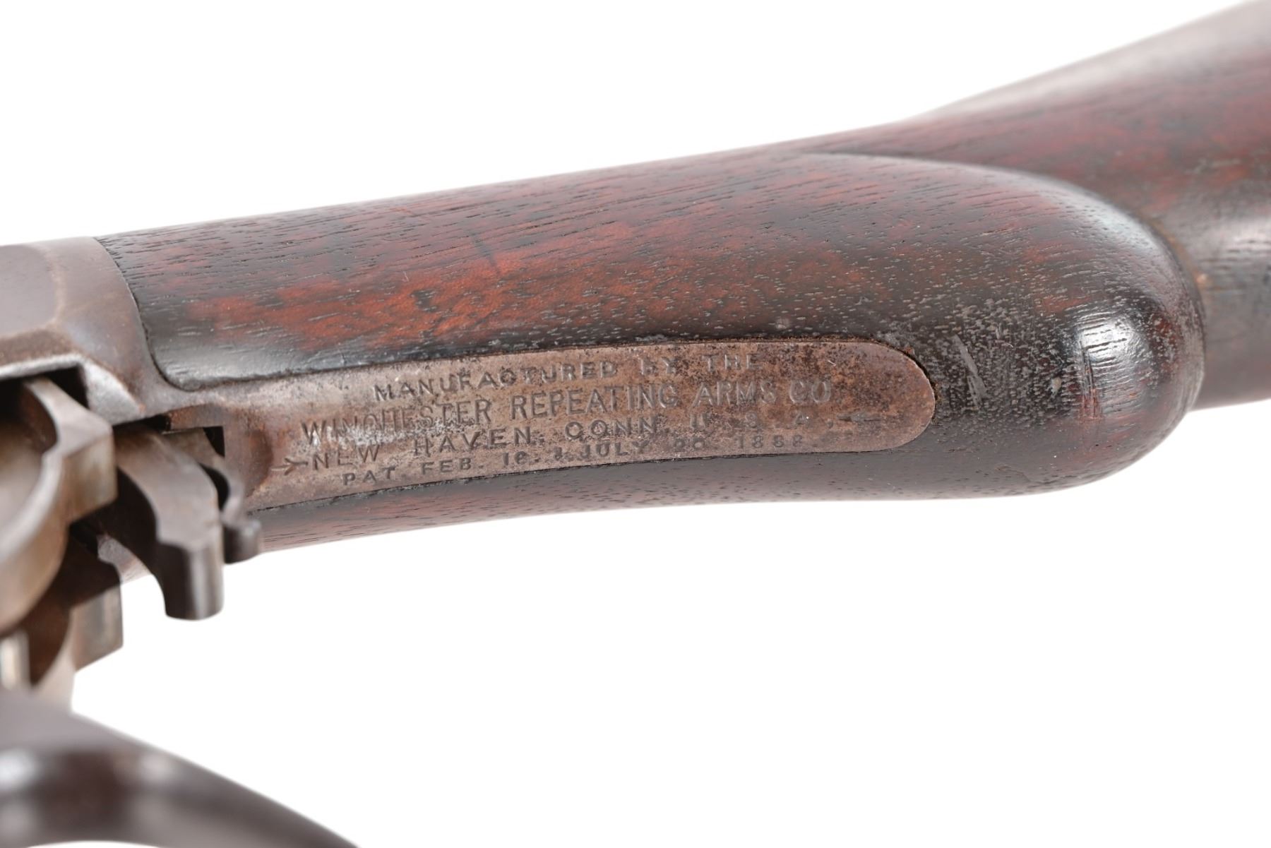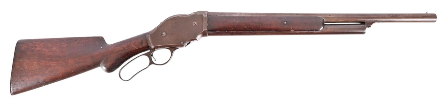 S/N 27182. Winchester Model 1887 Lever Action Riot Shotgun, 12 GA, manufactured in 1889. Original condition, with 21" barrel. Attributed to Texas Ranger James King. Antique.