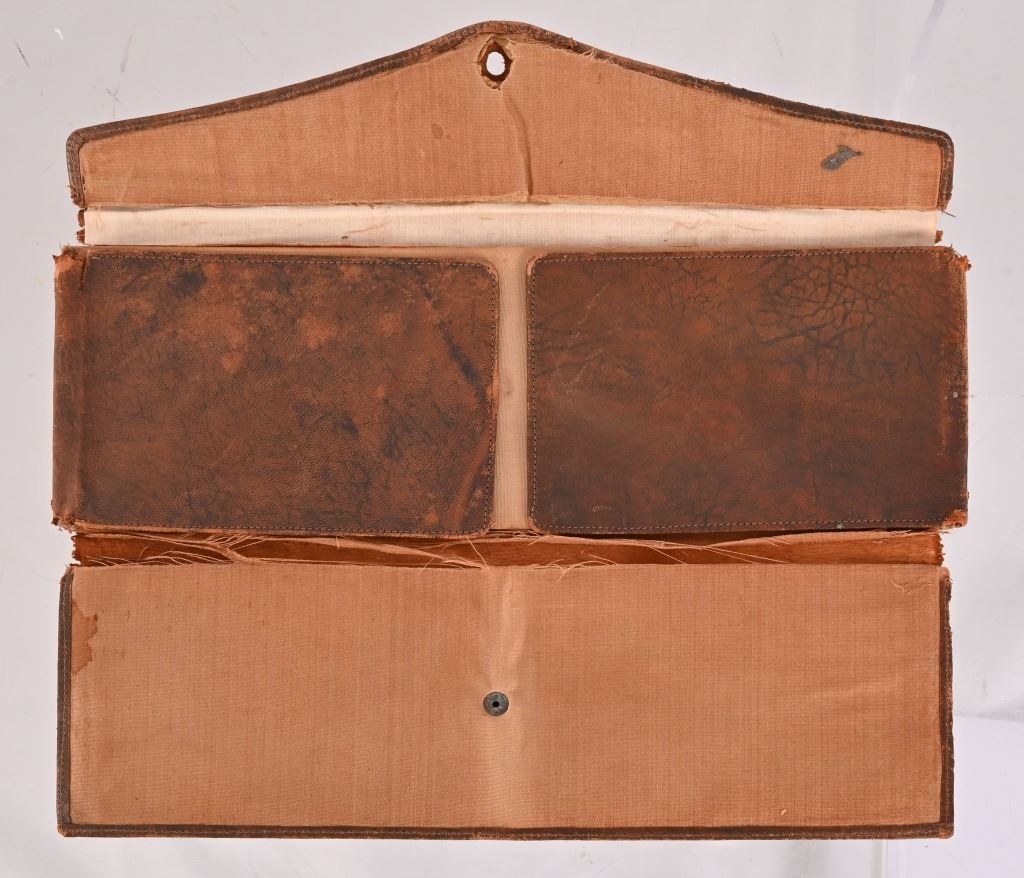 from the personal collection of Legendary Texas Ranger Jack C. Hays. Leather document wallet used for serving warrants and documents during Ranger service. From the Applewhite-Clark Collection.