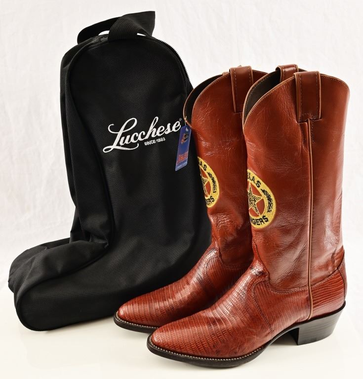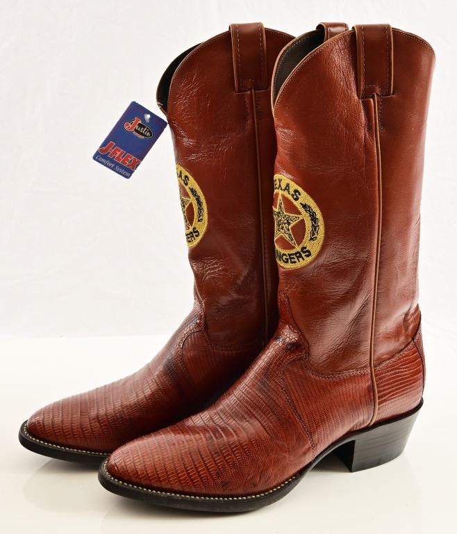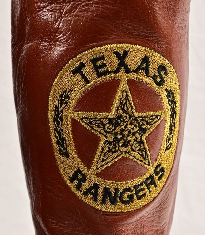 Embroidered with the Texas Ranger's emblem, soles appear to have never been worn. Size 7 1/2 E