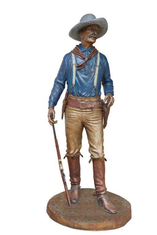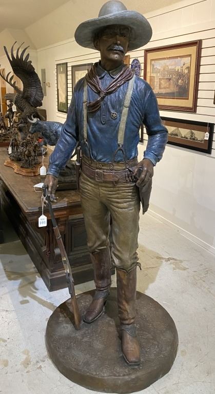 "Watchin' Over Texas" Bronze signed by Edd Hayes 2006. Stands 6 foot 6 inches, with a 32" diameter base.