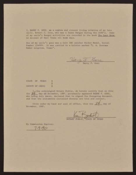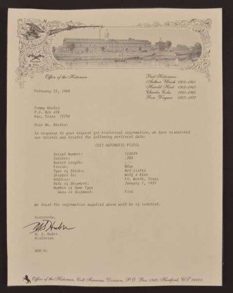 * Comes with Two Colt Letters. One Sessums Holster, One belt rig with knife. Also comes with badge. Belt size approx 38-40.