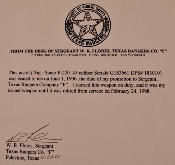 * Was issued to him on the day he was promoted to the rank of Sergeant & carried by him as his duty weapon until his retirement from ranger service.
