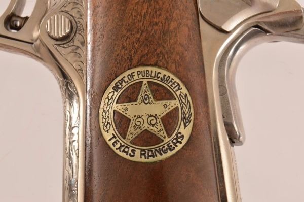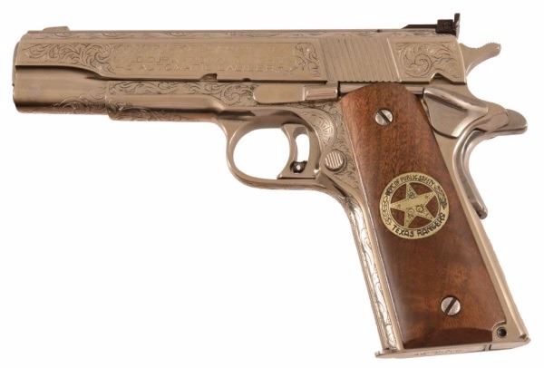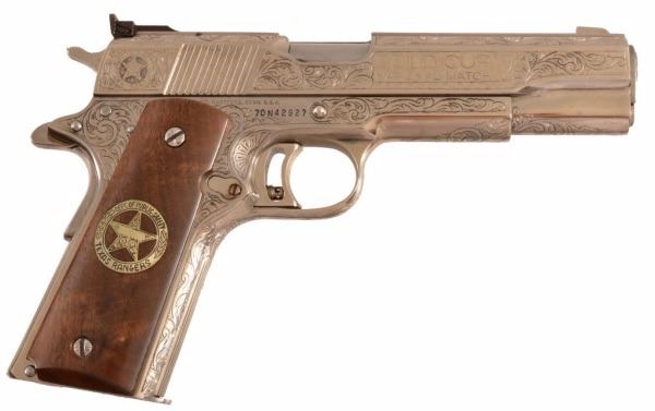 * Colt 1911 Gold Cup Natl. Match, .45 ACP Cal., fully engraved. Belonged to Texas Ranger W. R. Russ Authier, Sergeant Company āCā.