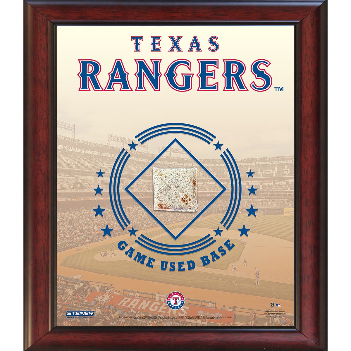 Texas Rangers Game Used Base 11x14 Stadium Collage