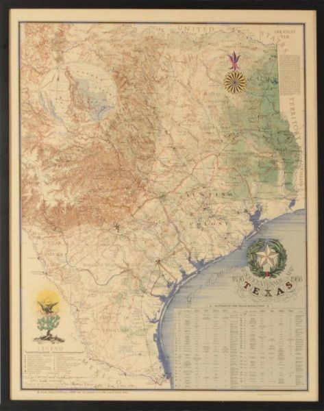 Signed, "For Henry and Judith Ingram with Best Wishes, John Davis Austin 2 Feb, 1986" in lower LH corner, framed. Map measures 25" wide x 31 1/2" tall.