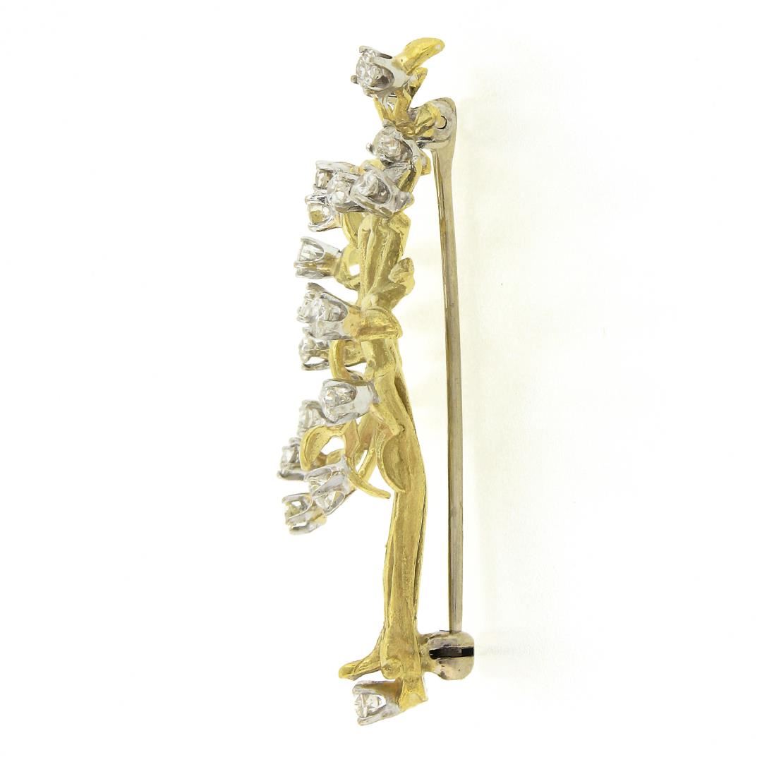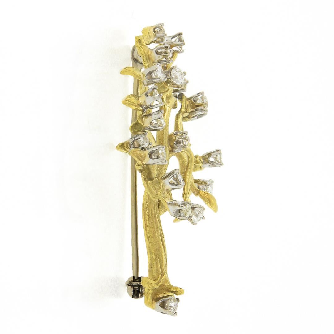 A solid 18k yellow & white gold tree brooch, with 19 old european & single cut natural diamonds (F/I - VS2-I1 ; 1ctw ). Measures 45.4x33.3mm and weighs a total of 8.54 grams.